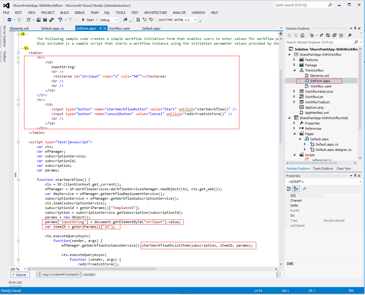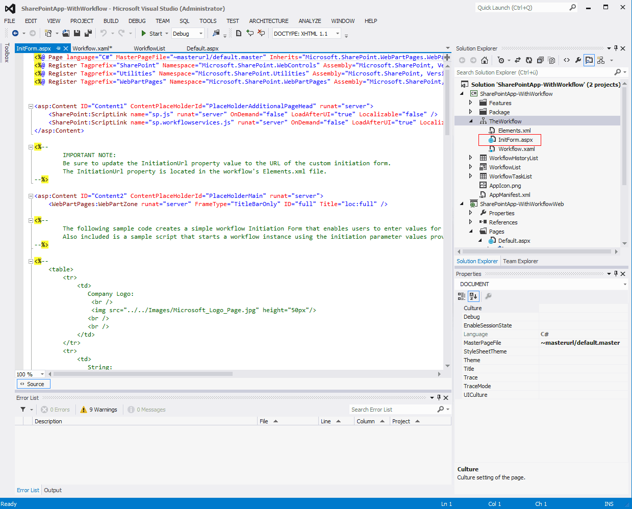 Create a SharePoint 2013 Workflow with a custom Initiation Form in Visual Studio 2012