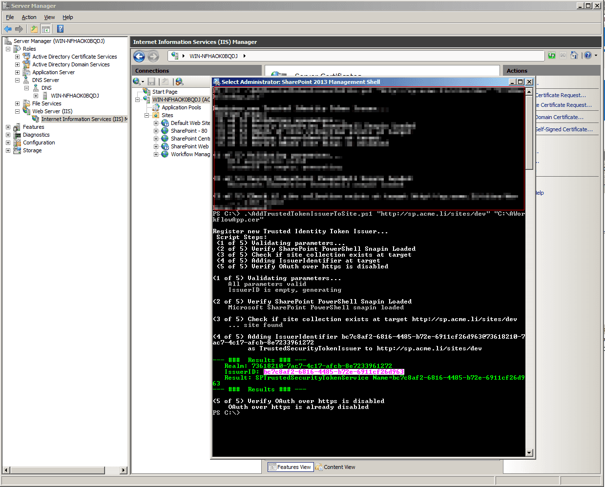 The result shows a new IssuerID which is used to identify the app. The IssuerID has to be entered when creating the Visual Studio Project.